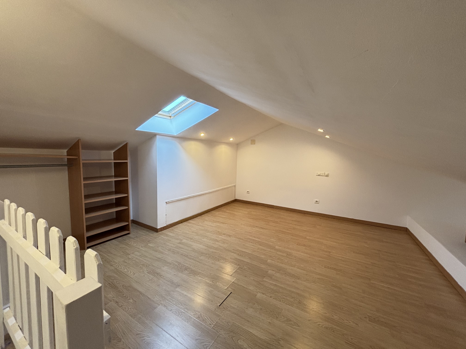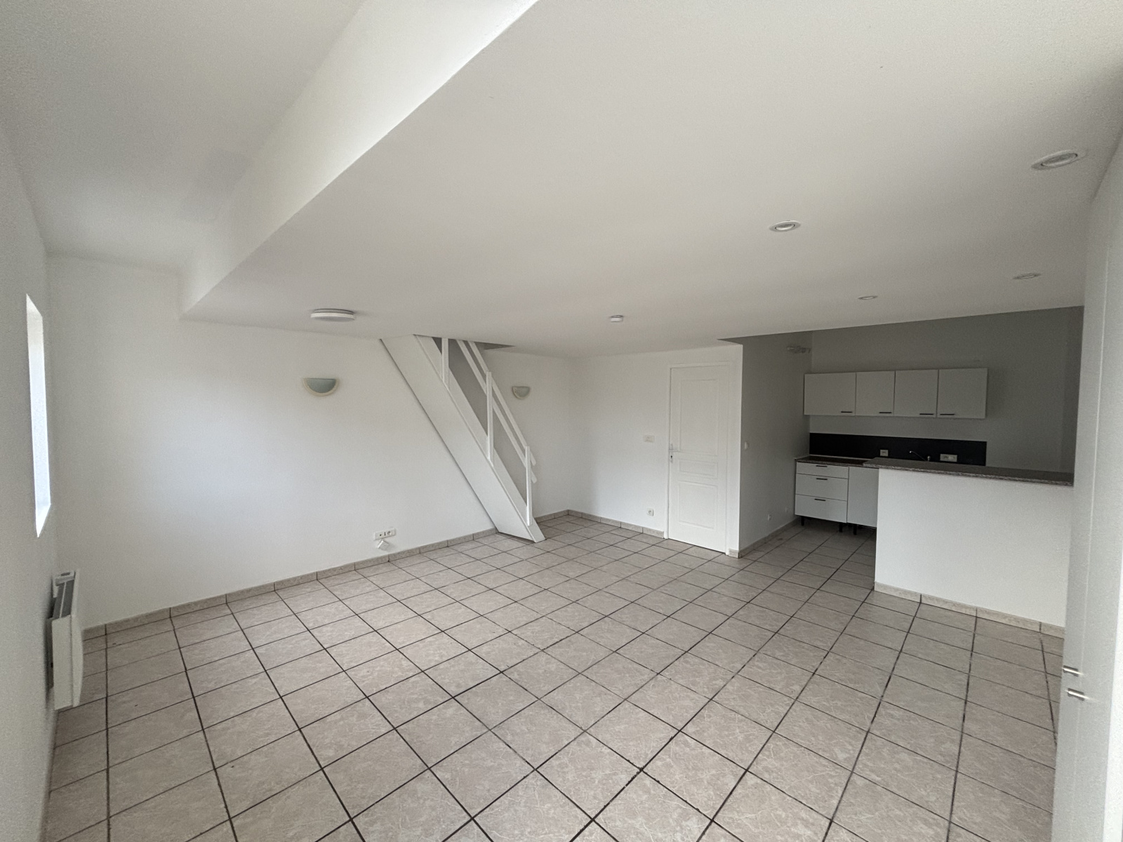 Il s’ouvre sur une entrée donnant sur un séjour/salon lumineux avec cuisine semi-ouverte, aménagée et semi-équipée. La salle d’eau est équipée d’une douche, d’une vasque simple et de sanitaires.