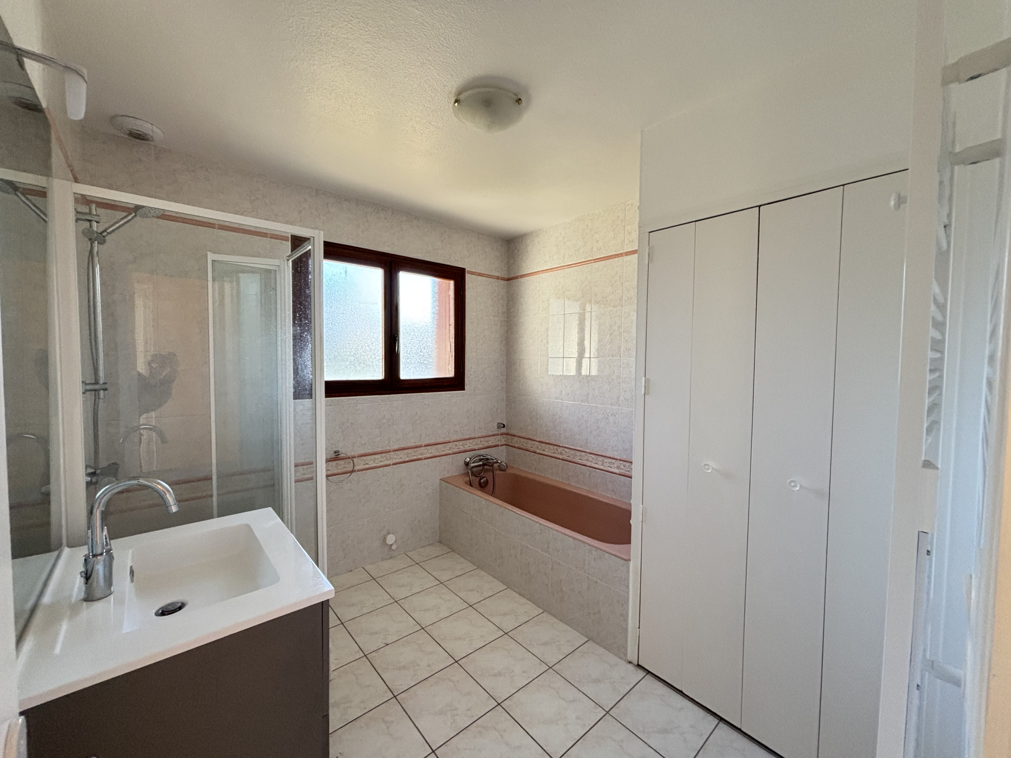 L’espace nuit se compose de 2 belles chambres avec placard, d’une salle de bains avec baignoire et douche et simple vasque, puis sanitaire indépendant.