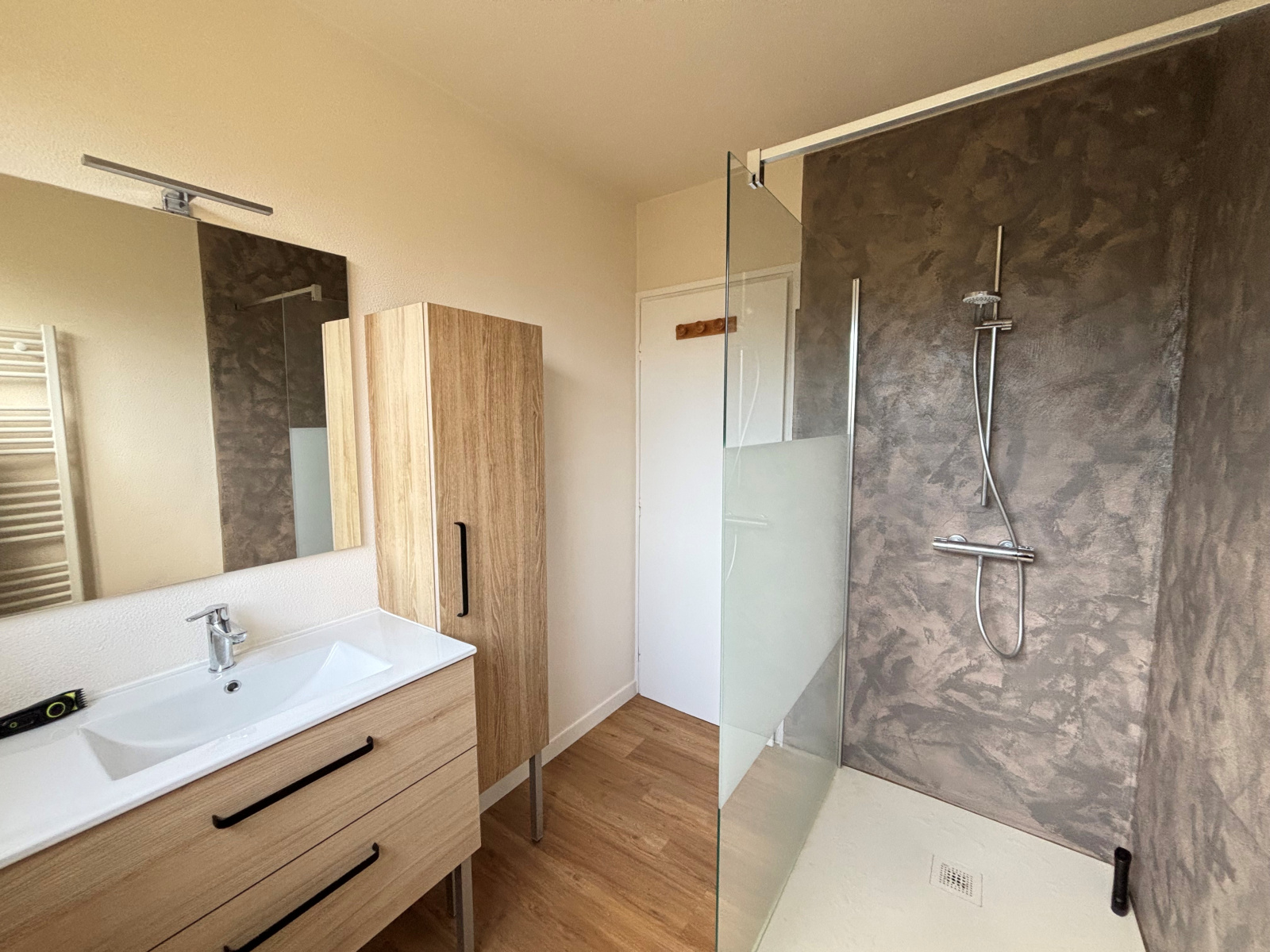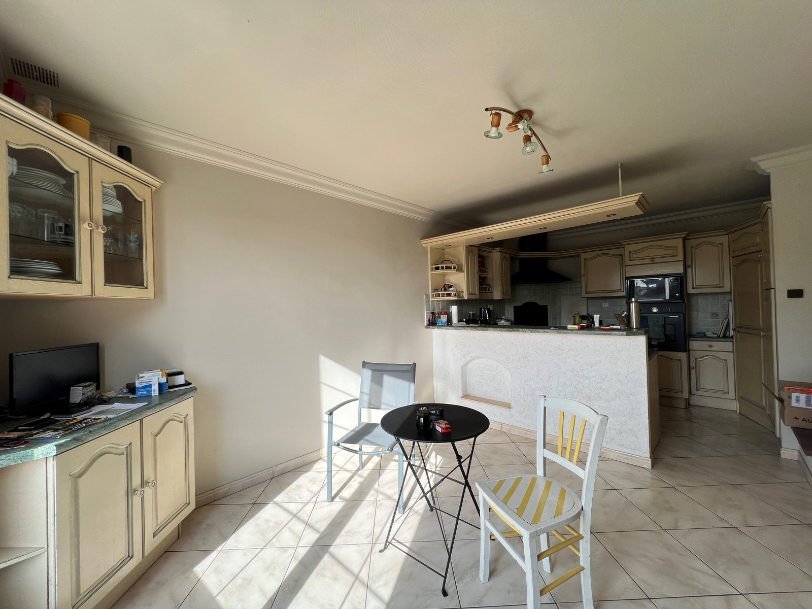 Vous découvrirez une entrée accueillante ouvrant sur un séjour/salon lumineux, ainsi qu’une cuisine indépendante, aménagée et entièrement équipée, offrant un espace fonctionnel et convivial.