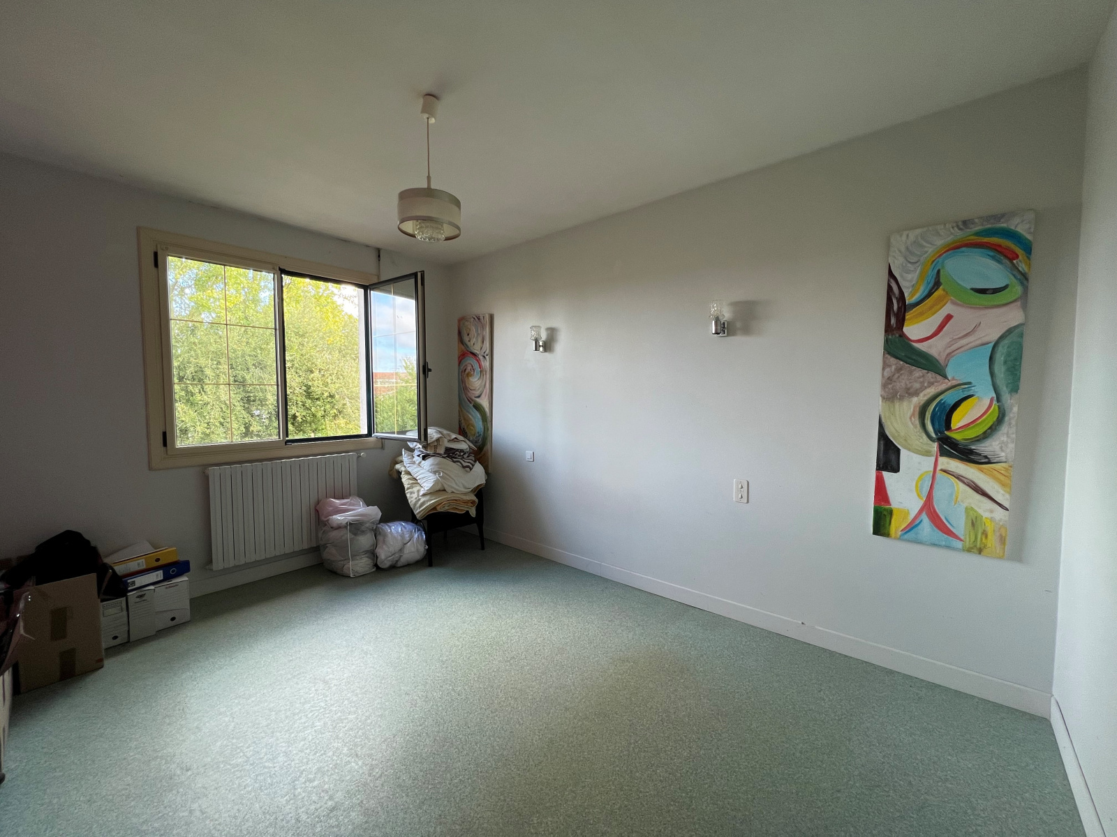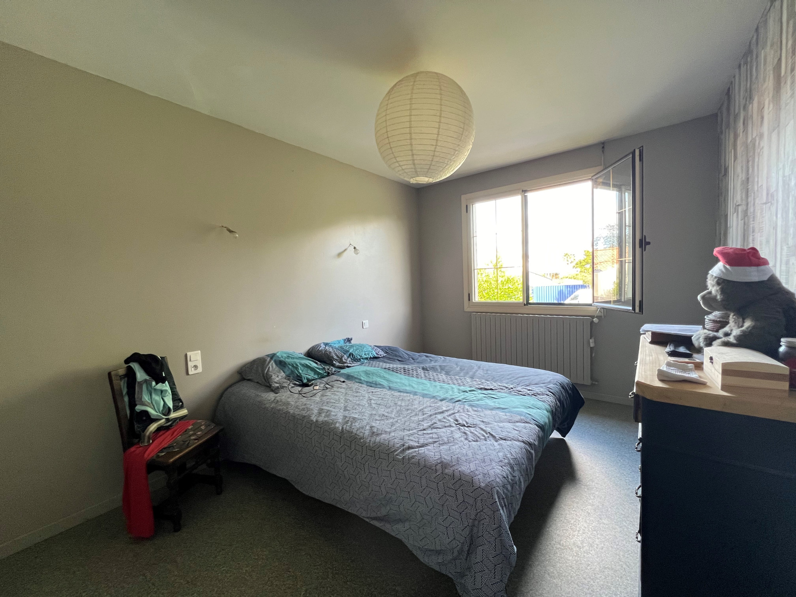 Le dégagement, pourvu d’un placard, dessert trois chambres, une salle de bains, ainsi que des sanitaires indépendants, permettant un confort optimal au quotidien.