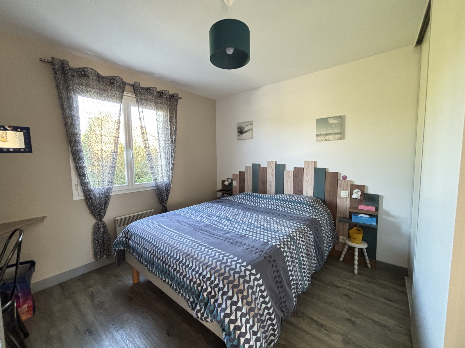 La partie nuit se compose de trois chambres avec placards intégrés, idéales pour toute la famille, ainsi qu’une salle d’eau contemporaine et des toilettes indépendantes.