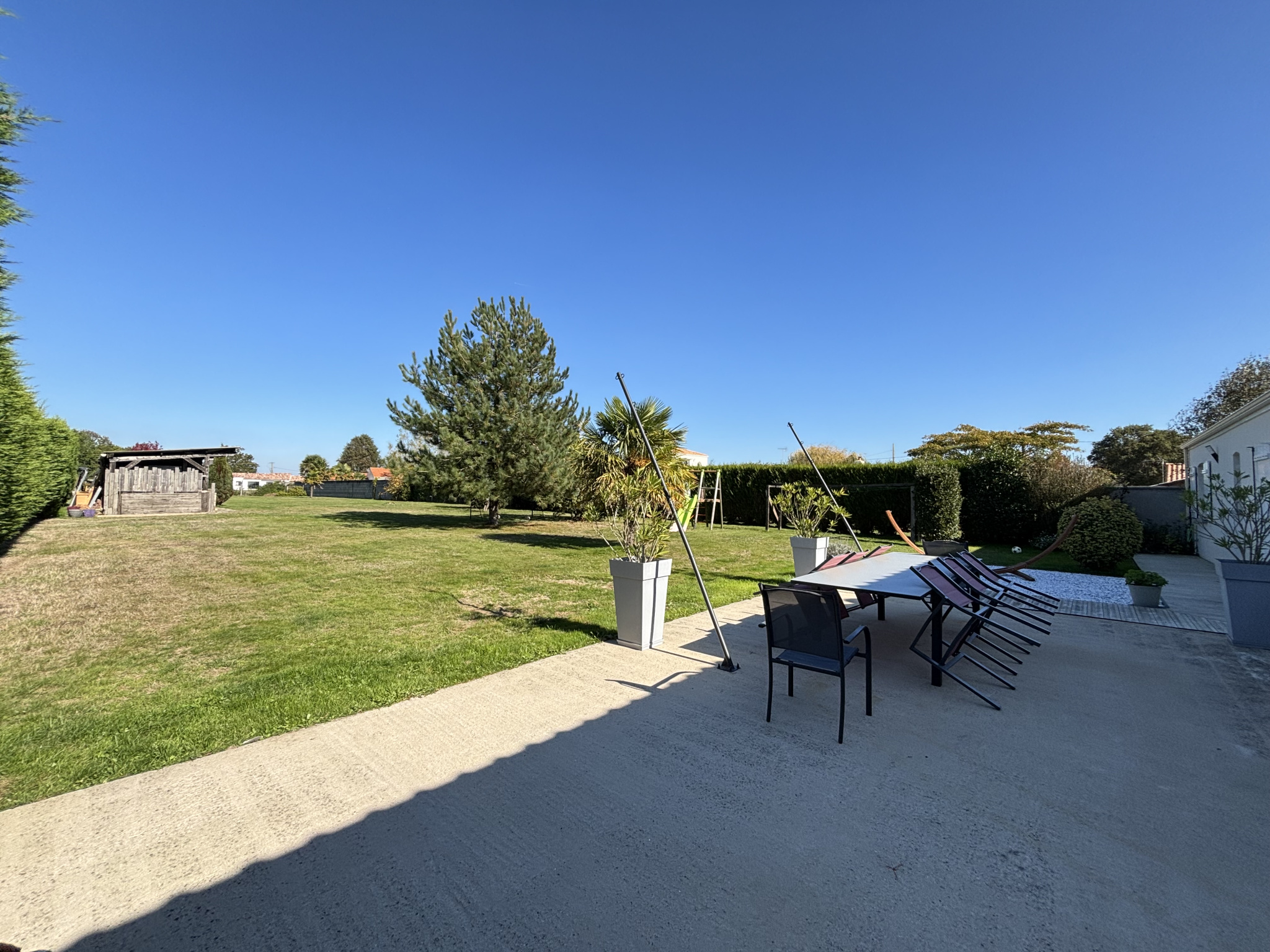 Dès l’ouverture du portail, vous êtes séduit par un magnifique terrain clos de plus de 2 000 m², un véritable havre de paix où se mêlent espace, lumière et intimité.