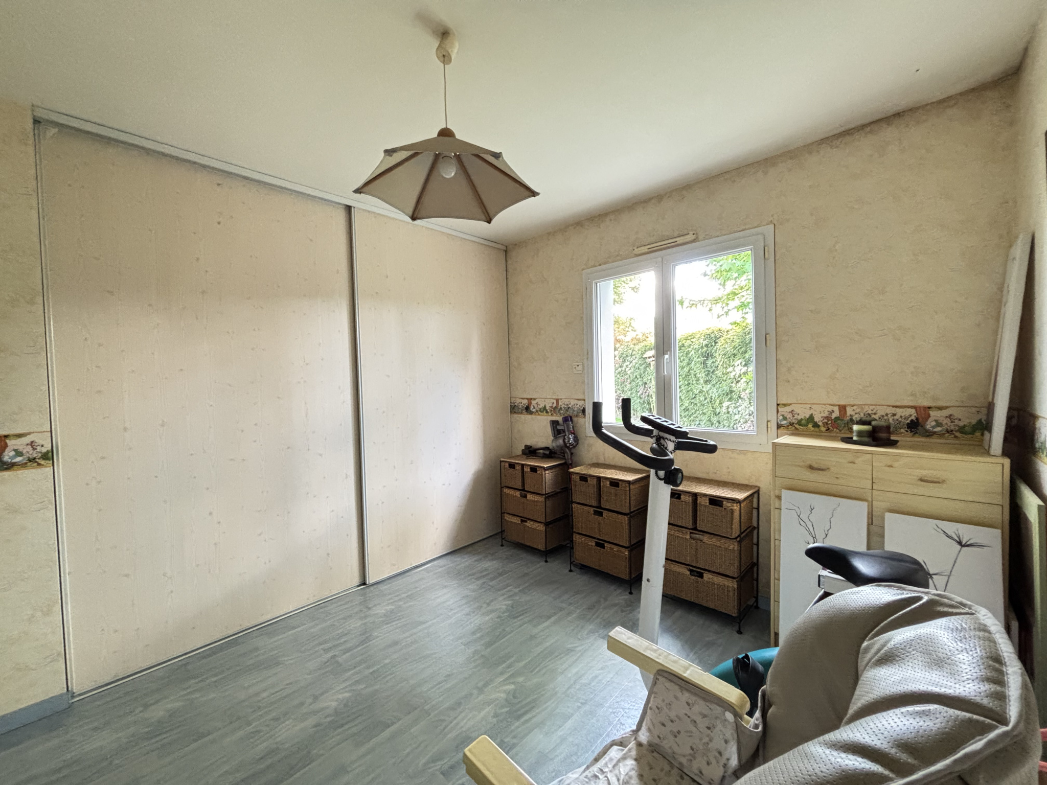 L’espace nuit se compose d’un dégagement desservant trois chambres confortables, toutes équipées de placards intégrés, permettant une organisation optimale. La salle de bains propose à la fois une douche et une baignoire, s’adaptant ainsi aux besoins de toute la famille. Un sanitaire indépendant complète cet ensemble.