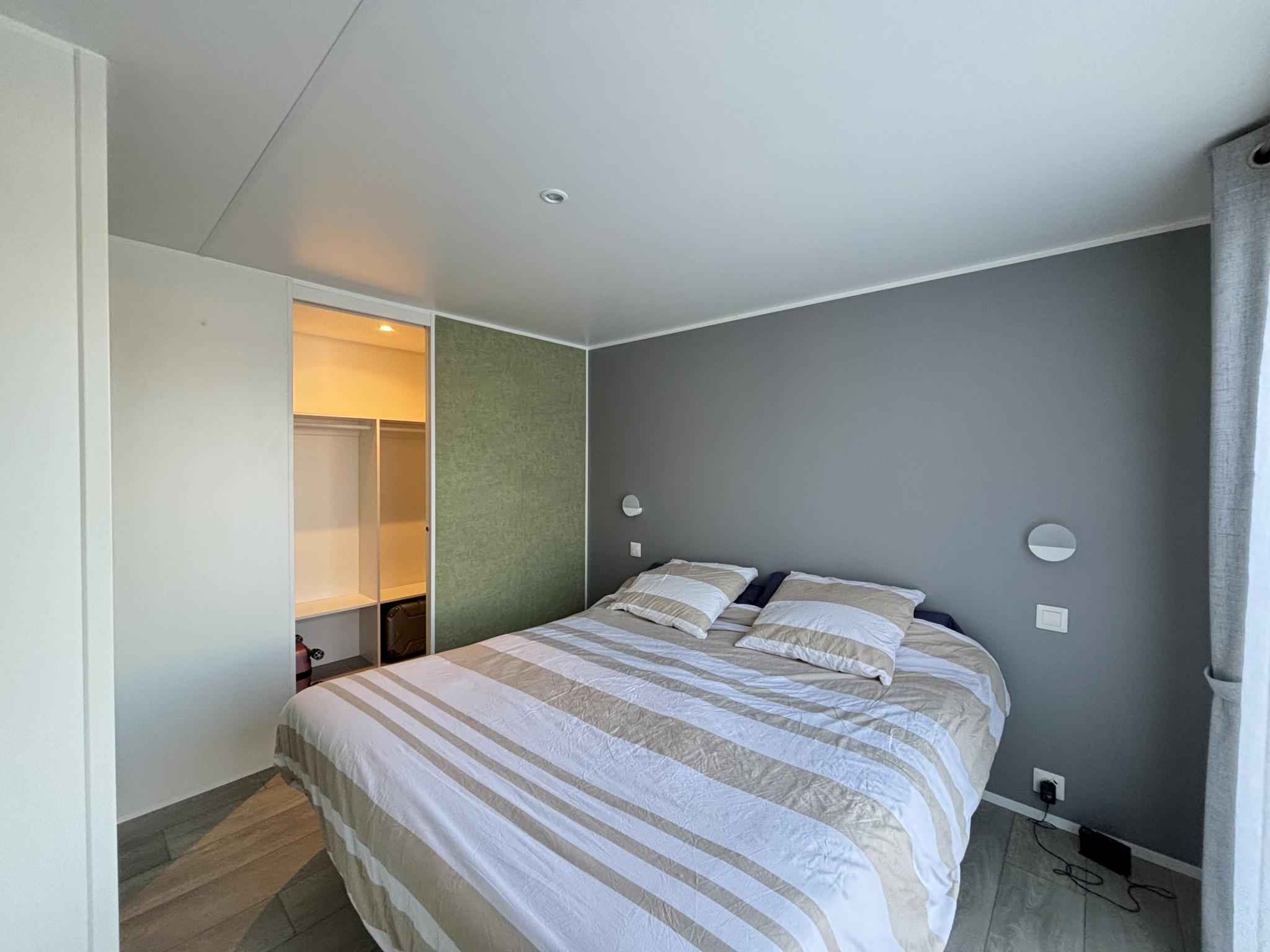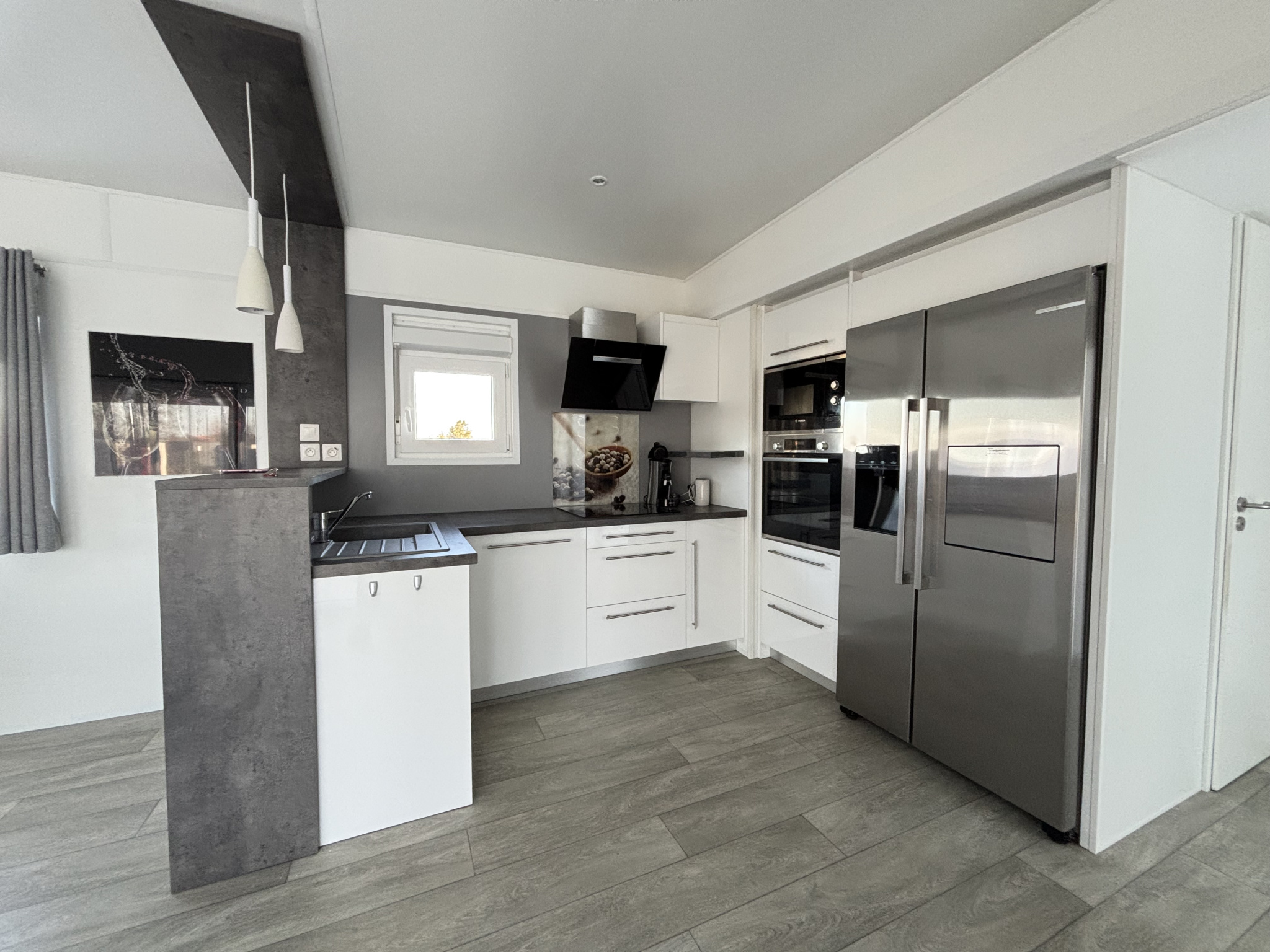 À l’extérieur, vous disposerez d’une place de stationnement sous carport privatif, d’un cabanon, d’un spa privé à l’abri des regards et d’un coin barbecue pour profiter de moments conviviaux entre amis ou en famille