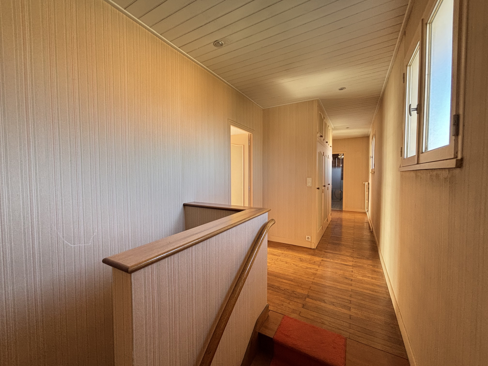 Le séjour-salon, spacieux et baigné de lumière, est agrémenté d’une cheminée avec insert, créant un espace chaleureux pour vos soirées en famille ou entre amis. La configuration ouverte et les volumes généreux donnent à cette pièce une impression de liberté et de convivialité. Un WC indépendant complète ce niveau pour plus de confort.