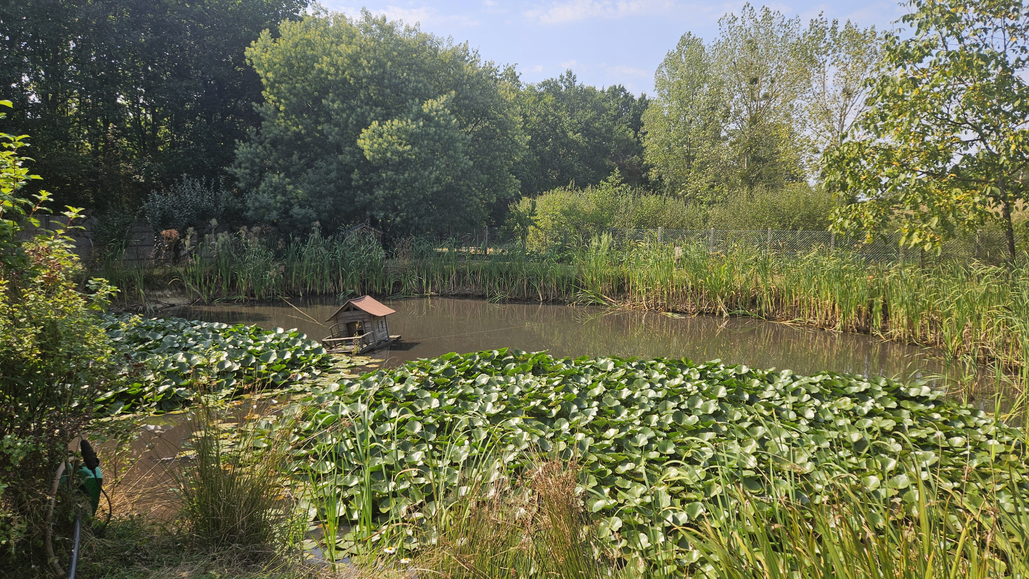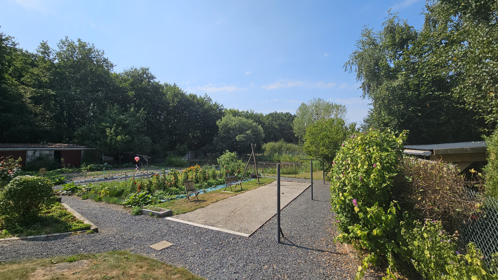 À l’extérieur, le terrain généreux de 2 575 m², agrémenté d’un potager, d’un étang et d’un jardin paysager soigneusement entretenu, constitue un véritable havre de paix pour profiter pleinement de la nature et de la sérénité environnante