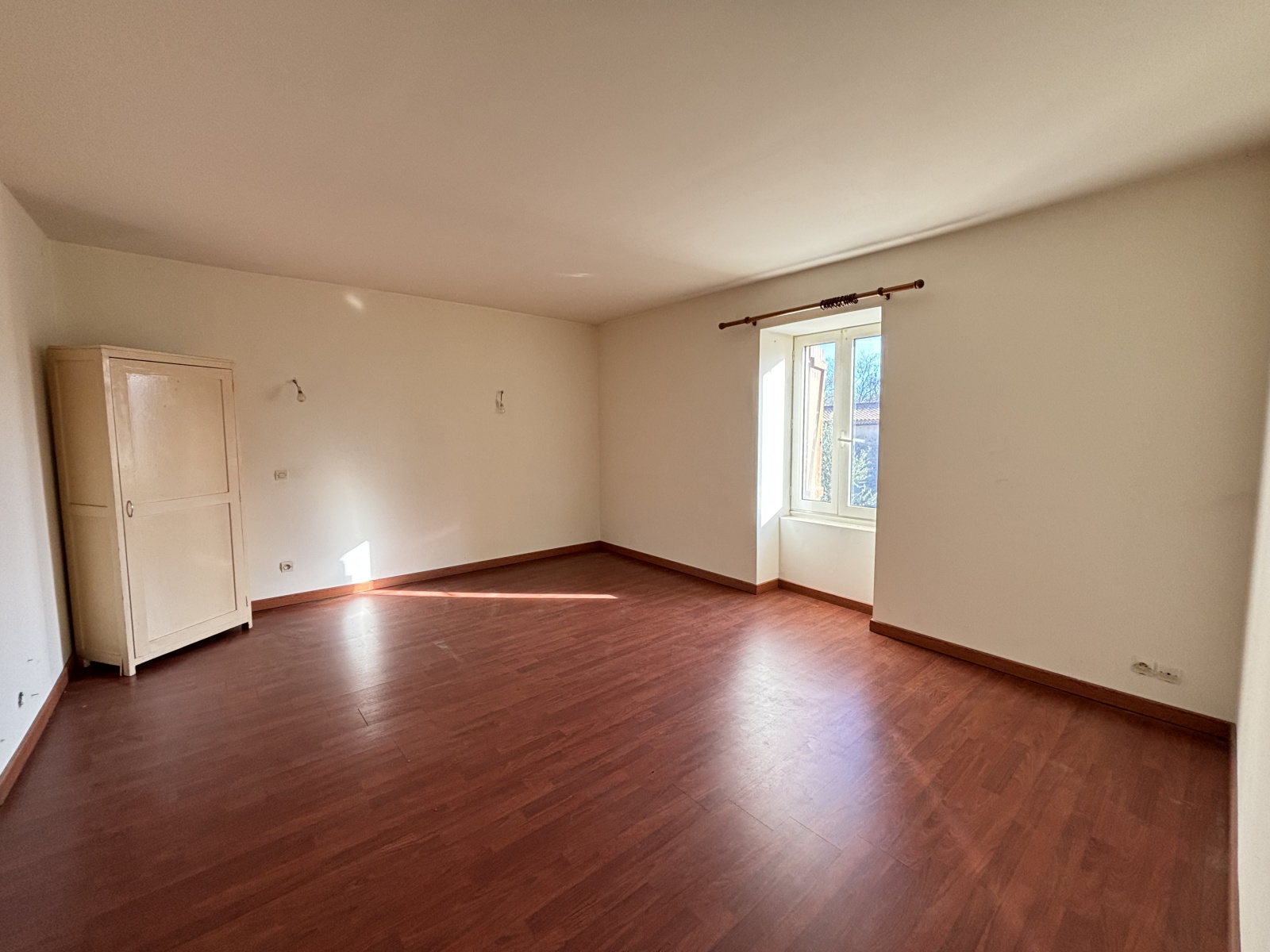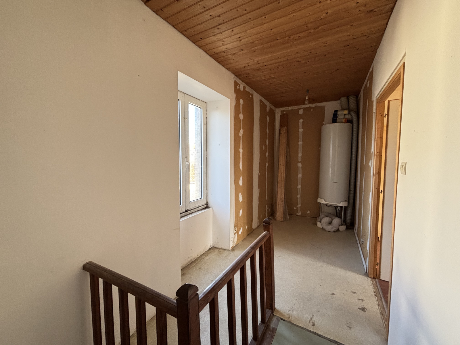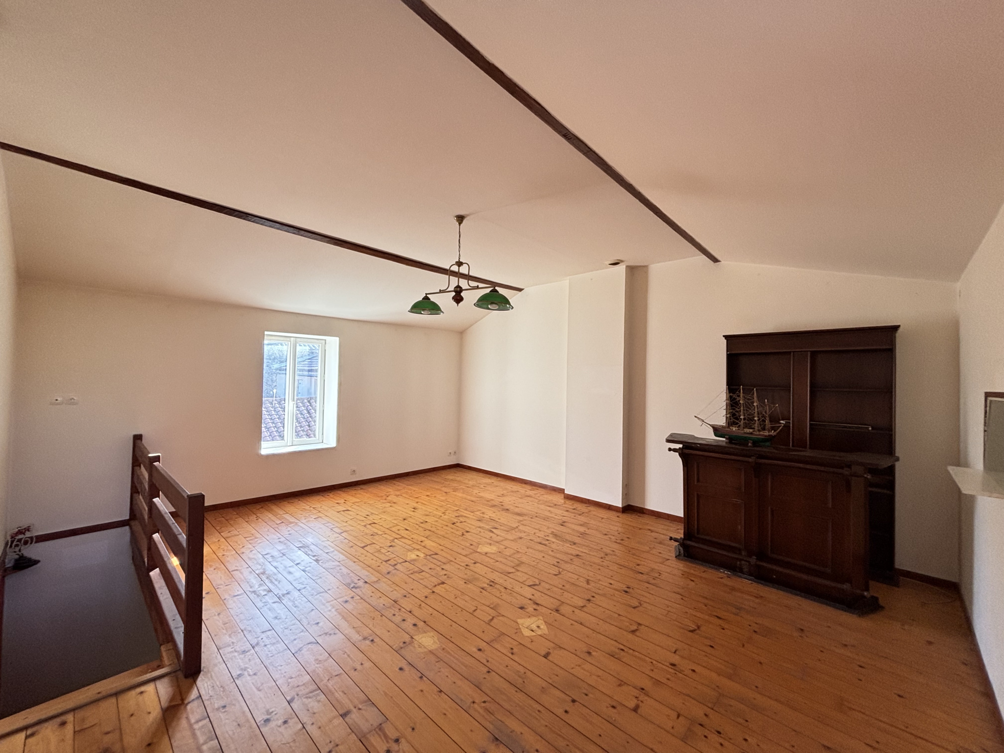 À l’étage, un palier dessert une chambre et deux pièces supplémentaires, offrant un potentiel intéressant mais nécessitant des travaux d’aménagement, notamment pour créer des espaces fonctionnels et optimiser le confort