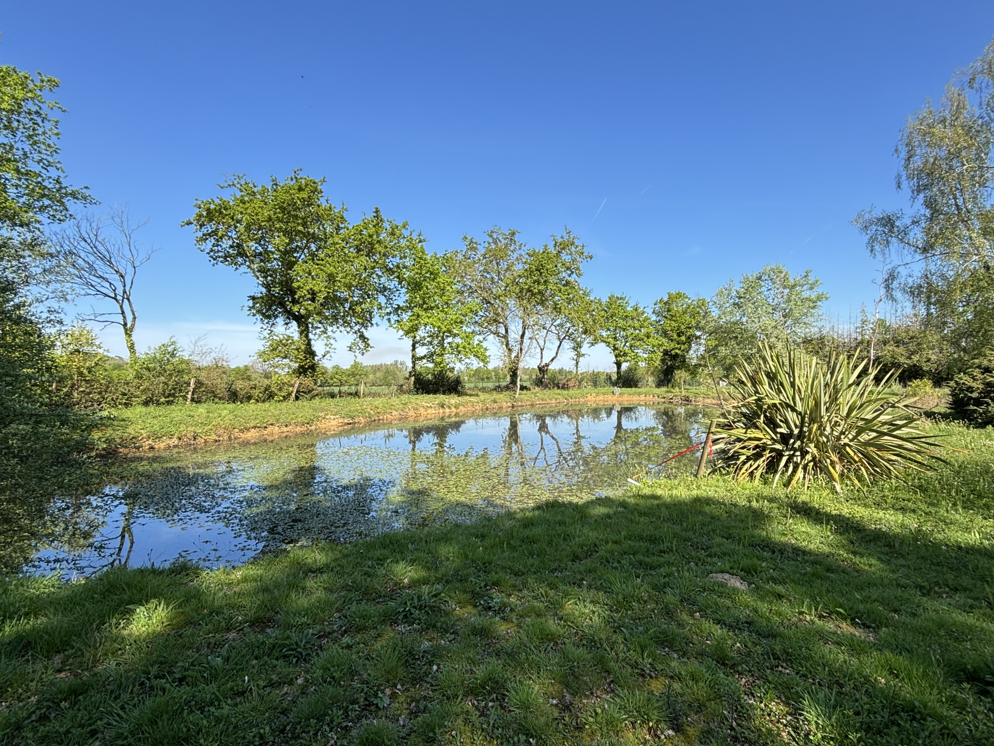 À l’extérieur, le charme opère immédiatement avec un magnifique terrain clos et joliment paysagé de 6 584 m², comprenant allée goudronnée avec portail électrique, mare, poulailler et un vaste potager de 3 032 m² avec hangar.