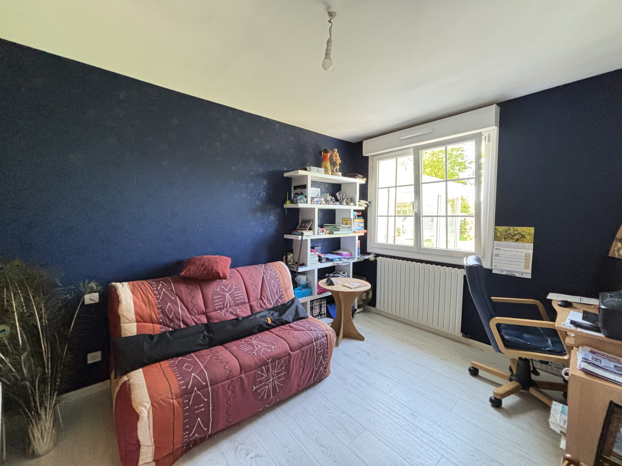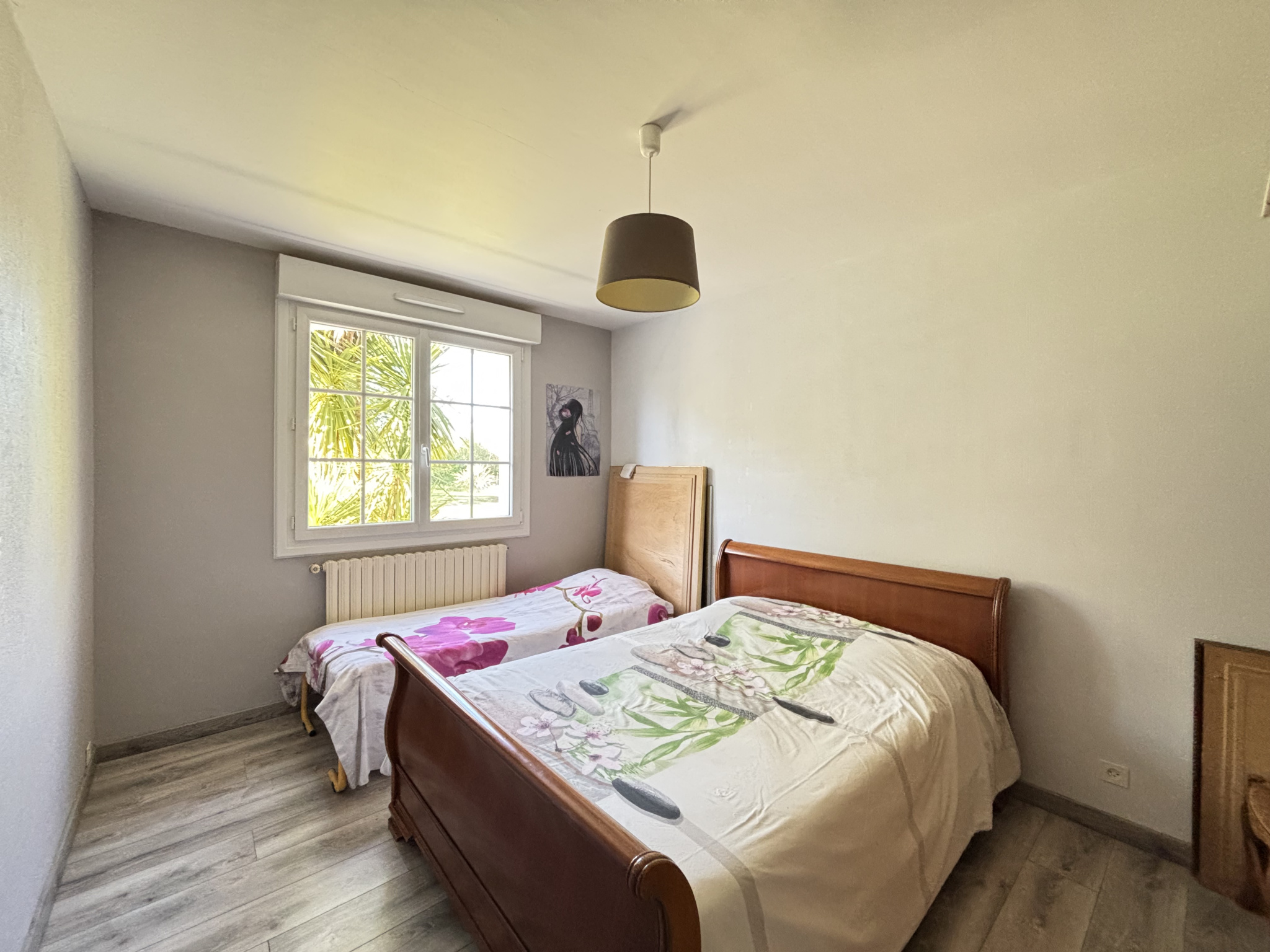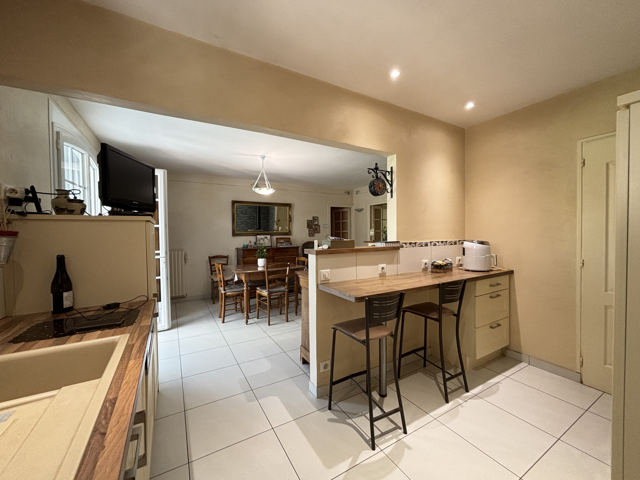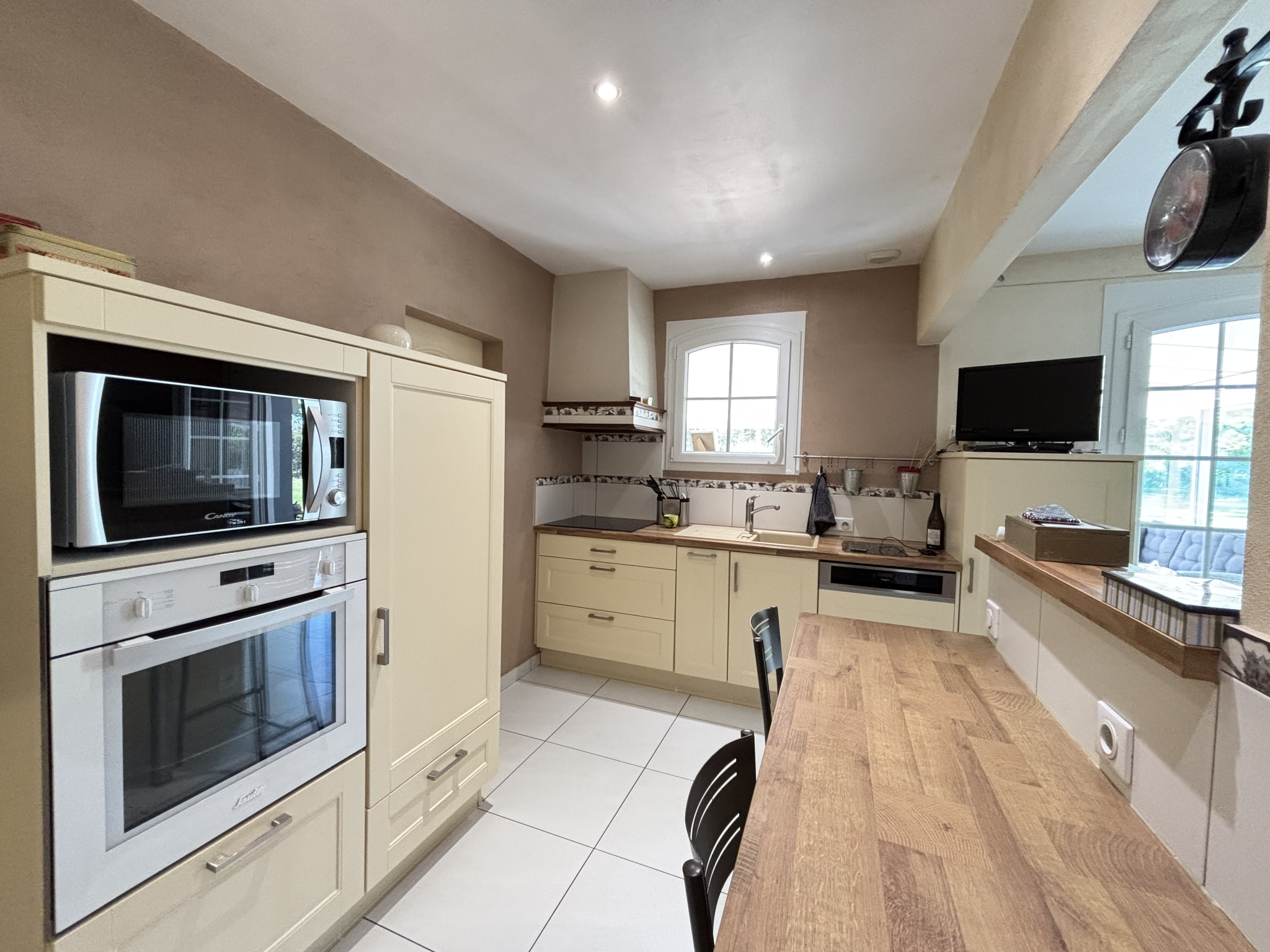 Elle se compose d’un hall d’entrée, d’un lumineux séjour-salon avec cheminée insert, d’une cuisine aménagée et équipée récente (2019), ainsi que d’une spacieuse véranda de 34,90 m² réalisée en 2008, véritable pièce de vie supplémentaire, équipée d’une climatisation réversible.
